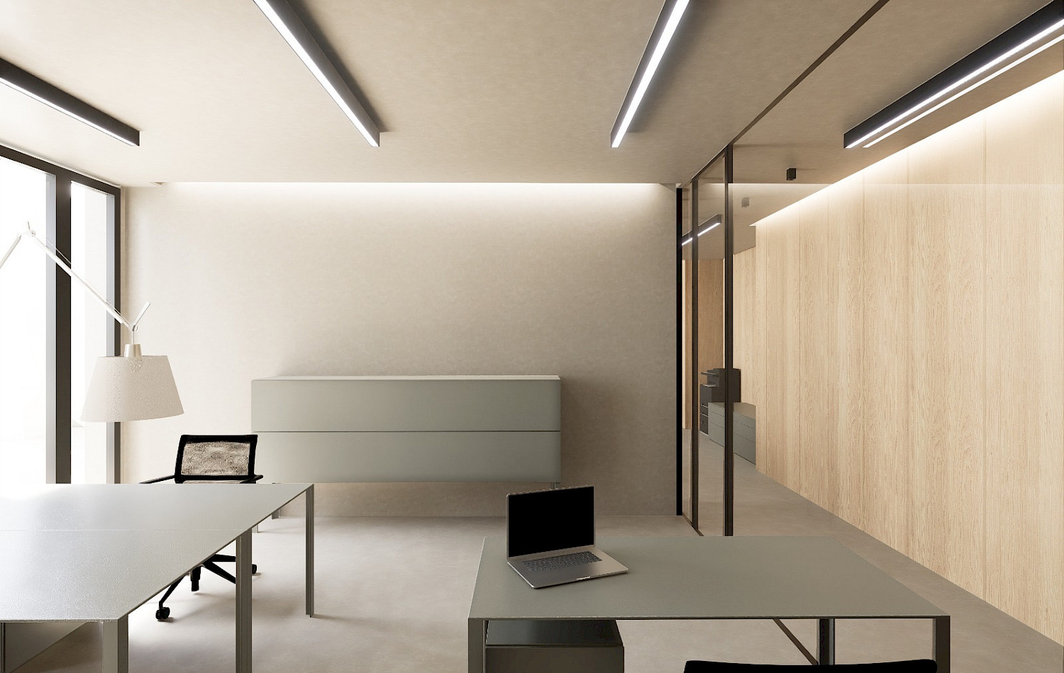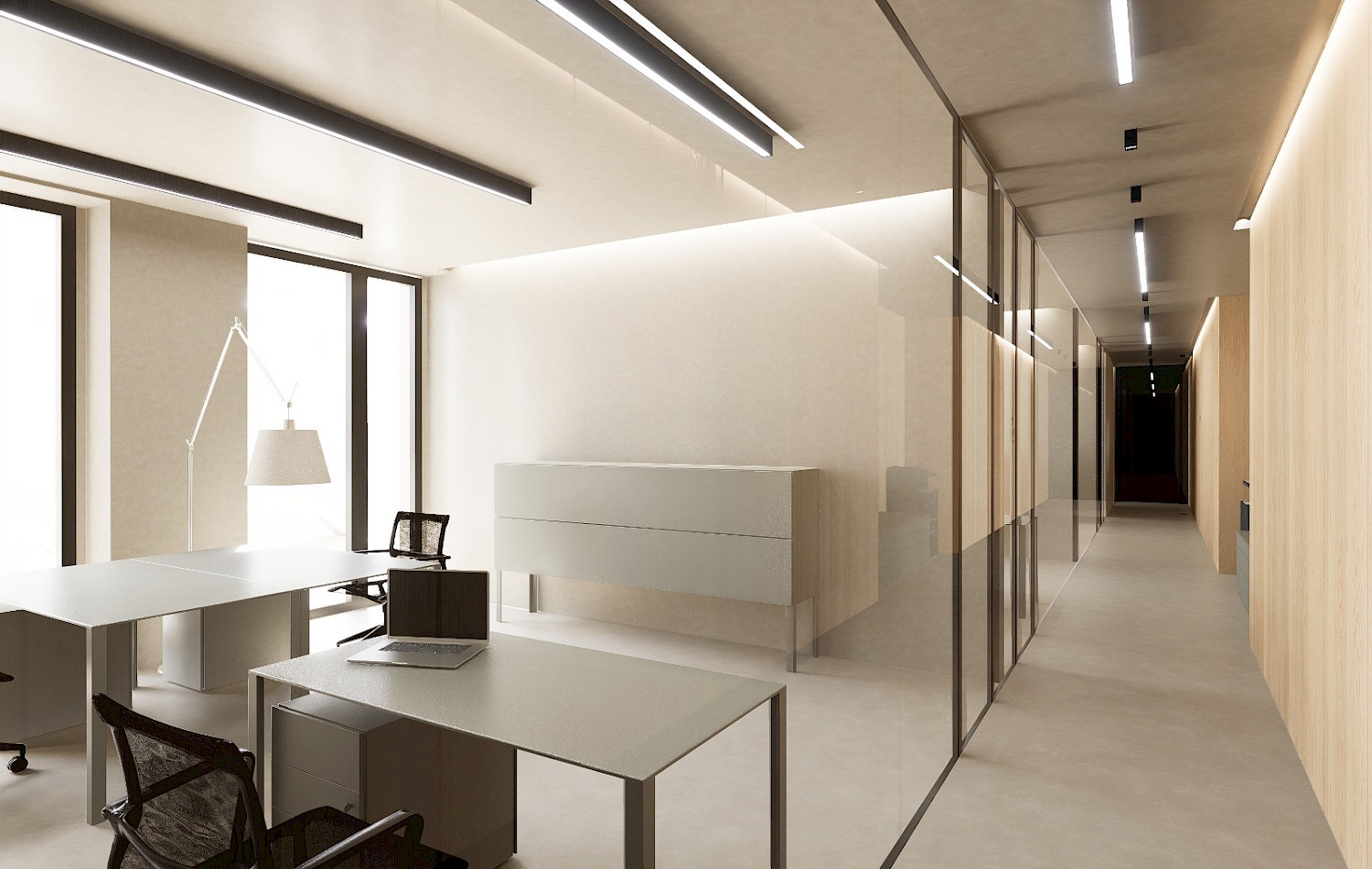 On the ground floor, the staff offices were consolidated and separated by glass partitions. The short distances enhance collaboration among employees. A direct connecting door links the office spaces with the shop and entrance area. For sales tastings with major clients or confidential discussions, the adjoining meeting room is available. The material concept was chosen to be bright and timeless. A well-designed acoustic and lighting concept ensures a pleasant working environment.